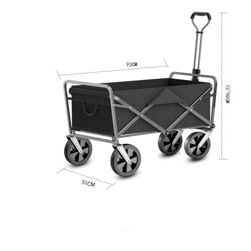 FSJMTQTS Bollerwagen Faltbar Faltbarer Picknickwagen Tragbarer Einkaufsstallwagen für Camping Strand(Black)