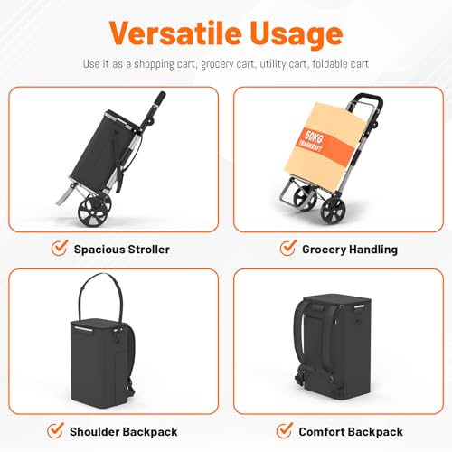 【4in1 Design】Ob als Einkaufswagen, Sackkarre, Umhängetasche oder Schultertasche, Sie entscheiden, es ist ein Helfer für den Transport schweren Gegenständen; die Einkaufstasche ist mit einem verstellbaren Schultergurt ausgestattet.