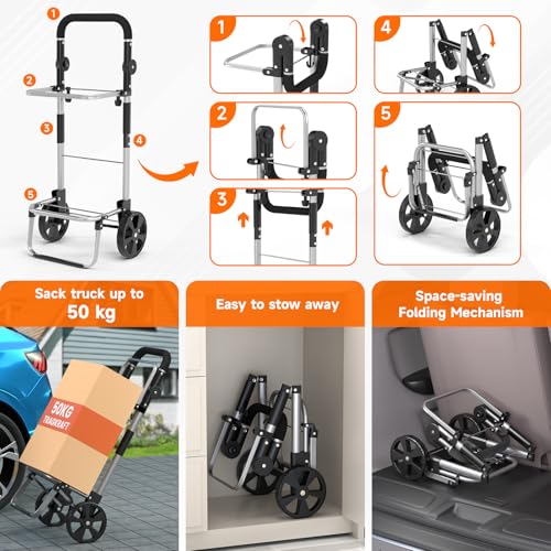 【Klappbar Design】 Die Trolley sind 99 (H) x 43 (T) x 36 (B) cm, und der Einkaufstasche misst 34 x 24,5 x 49,5 cm und kann bis zu 50 kg tragen. Der Einkaufstrolley klappbar wiegt nur 3,5 kg und lässt sich zusammengeklappt leicht im Kofferraum Ihres Autos oder zu Hause verstauen.