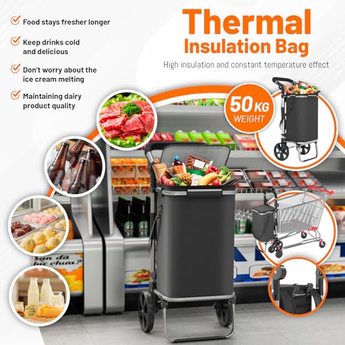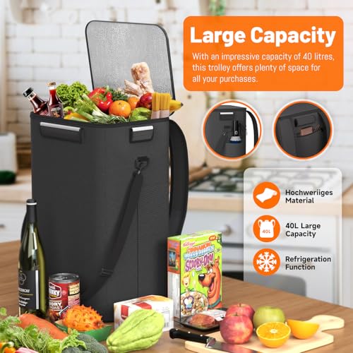【Integrierter Kühlschrank】Dieser Einkaufstrolley wird für den Transport und die vorübergehende Lagerung von gekühlten Produkten, Einkaufstasche kann Lebensmittel frisch und Getränke für Stunden kühl halten, es ist die beste Wahl für Ihre täglichen Einkäufe oder Outdoor-Aktivitäten.