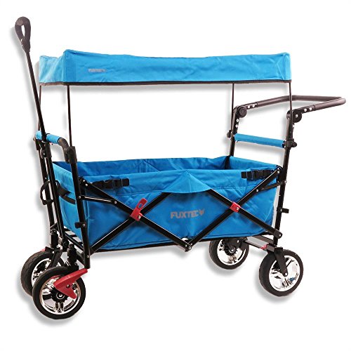 Fuxtec Bollerwagen faltbar FX-CT700 Türkis mit Dach – Transportwagen klappbar | inkl. komfortablem Schiebegriff | Feststellbremse | Vollprofilreifen | Handwagen/Leiterwagen – Das Original