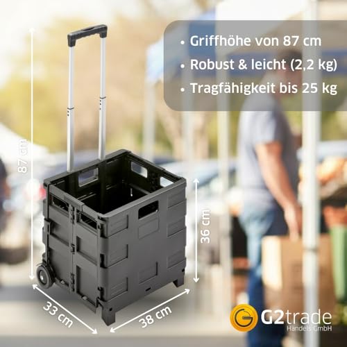 G2 Klappboxtrolley SPACY – Klappbarer Einkaufstrolley mit Rollen, faltbar & leicht – Tragkraft 25 kg – Einkaufskorb mit ausziehbarem Griff – Klappbox für Einkauf & Transport – Schwarz