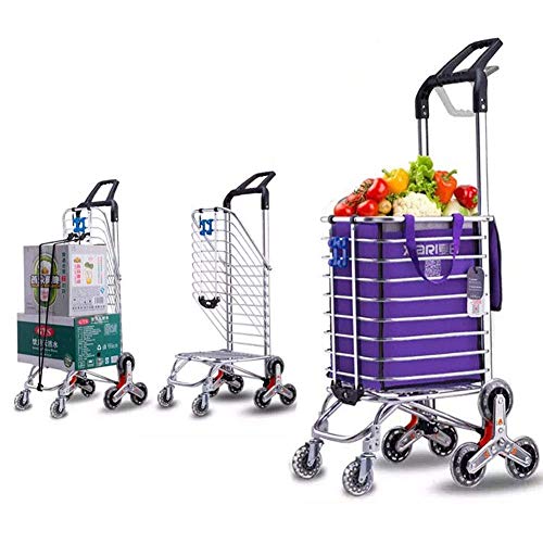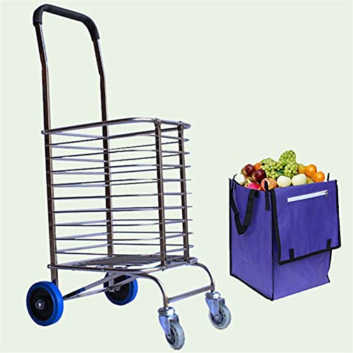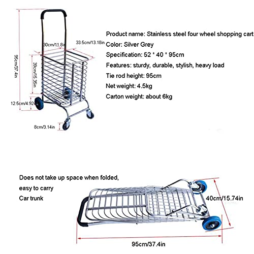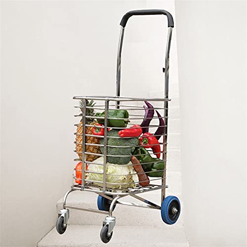 gbgymjm Einkaufstrolley Edelstahl-Einkaufstrolley Faltbarer Lebensmittel-Dienstprogramm Treppenwagen mit 4 Rädern für…
