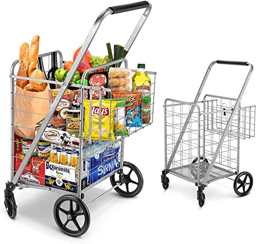 Super Ladekapazität: Der Einkaufswagenrahmen besteht aus dickem Metallmaterial, das für jahrelangen Gebrauch haltbar ist. Es kann schwere und amp; großer Arbeit. Mit diesem einzig großen, luxuriösen Mehrzweckwagen war es noch zu keiner Zeit so einfach, riesige Lasten und schwere Gegenstände wie Wäsche, Lebensmittel und Sportartikel zu transportieren