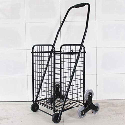 gbgymjm Einkaufstrolley Faltbarer Einkaufswagen Schwarzer Luxus-Treppenwagen Tragbarer dreirädriger Trolley ist sehr gut…