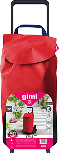 Gimi Einkaufstrolley mit 6 Rädern, wasserdichte Tasche, 100% Polyester, Fassungsvermögen 52 l, 44,1 x 50,7 x 95,6 cm, rot, Grande