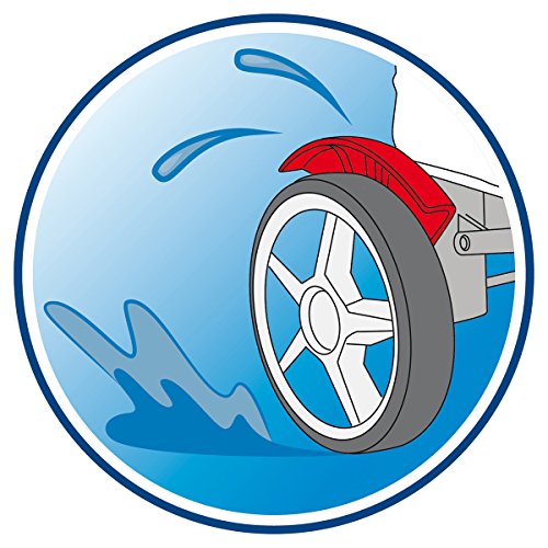 Dank der extragroßen Räder lässt sich der Trolley komfortabel über jedes Terrain ziehen, der Spritzschutz schützt die Tasche und Ihre Kleidung vor Verschmutzung