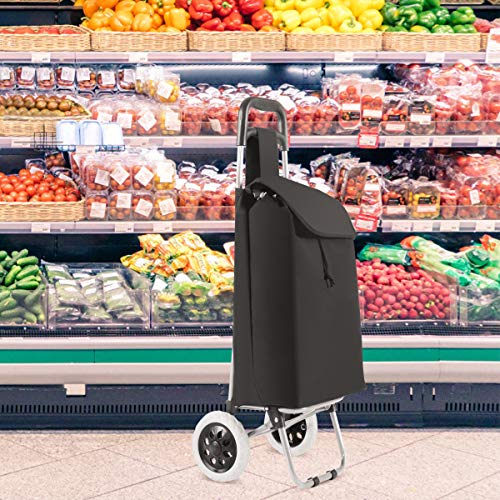 GOPLUS Einkaufstrolley, 2-in-1, zusammenklappbar, robuster und langlebiger Stahl, Schwarz