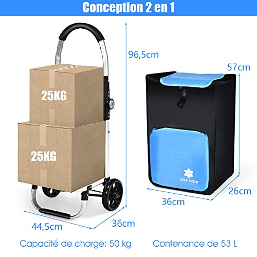 GOPLUS Einkaufstrolley, faltbar, 53 l, mit Rahmen aus Aluminium-Legierung und Kühlfach, Einkaufstrolley, tragbar mit 2…