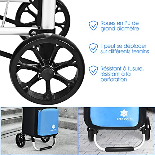 Großes Fassungsvermögen und Kühlfach: Die 53-Liter-Einkaufstasche mit hervorragender Wasser- und Abriebfestigkeit ermöglicht es Ihnen, möglichst viel Einkauf zu verstauen. Das Kühlfach ist praktisch zum Aufbewahren von Tiefkühlkost Darüber hinaus bietet es eine Tasche auf der Rückseite des Wagens Platz für kleine Gegenstände.
