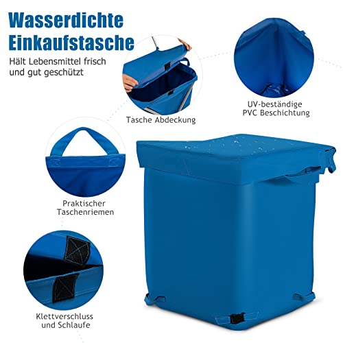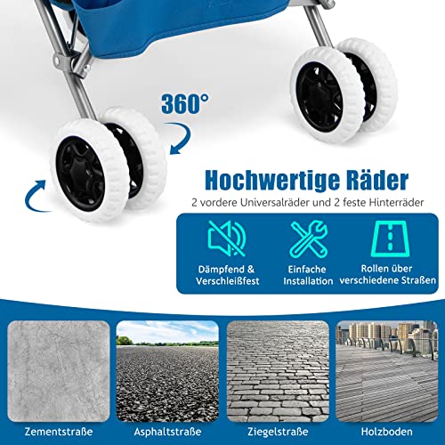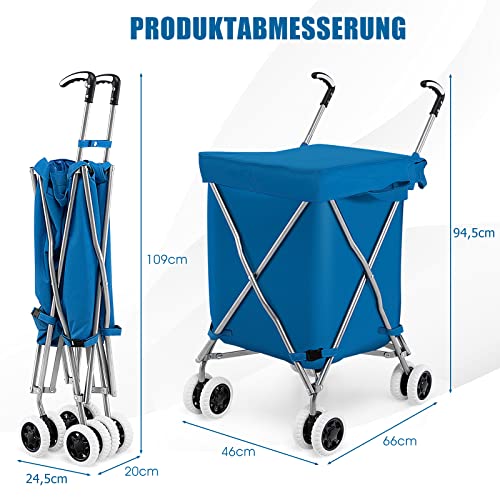 GYMAX Faltbarer Einkaufswagen mit flexiblen Rädern & L-förmige Griff, Höchstlast 90L/50kg, Rollwagen, Oxford-Gewebe & Abdeckung, tragbarer Transportwagen für Einkauf, Camping & Garten (Blau)