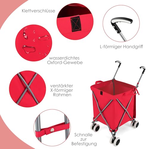 Dieser faltbare Rollwagen ist der perfekte Gehilfe für Ihren Alltag. Unser Trolley besteht aus einem X-förmigen Stahlrahmen und wasserdichtem Oxford-Gewebe. Es hat eine maximale Tragfähigkeit von 55 kg und wird die meisten Ihrer Anforderungen terminieren. Es ist ideal für den Einsatz in Supermärkten, auf Abgreifen oder im Garten. Die zwei universellen Räder und die zwei festen Räder sind so konstruiert, dass es auf Straßen, Betonwegen oder in Innenräumen problemlos gleitet und hält. Der ergonomische L-förmige Griff bietet Ihnen zusätzlichen Komfort. Der Einkaufskorb mit Deckel hält Feuchtigkeit und Staub wirksam fern. Außerdem ist es durch sein faltbares Design sehr kompakt und kann in jede Ecke gestellt oder herausgenommen und im Kofferraum verstaut werden, wenn es nicht gebraucht wird. Das leichte Design ist zudem sehr seniorenfreundlich.