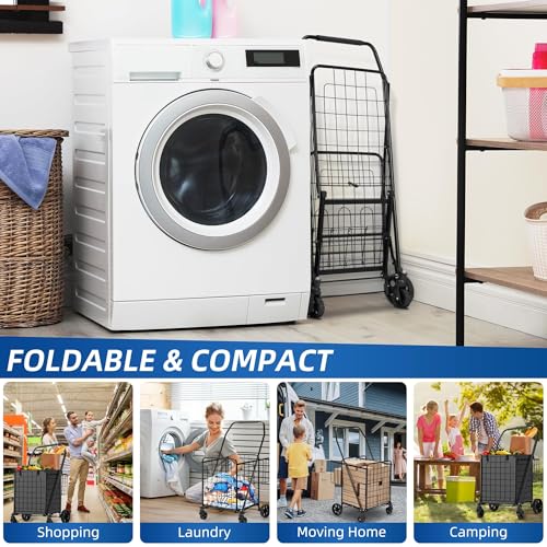 HABUTWAY Einkaufswagen für Lebensmittel, Einkaufswagen auf Rädern mit wasserdichtem Innenfutter, faltbarer Einkaufswagen für Lebensmittel, Gepäck, Wäsche, 50 kg Kapazität