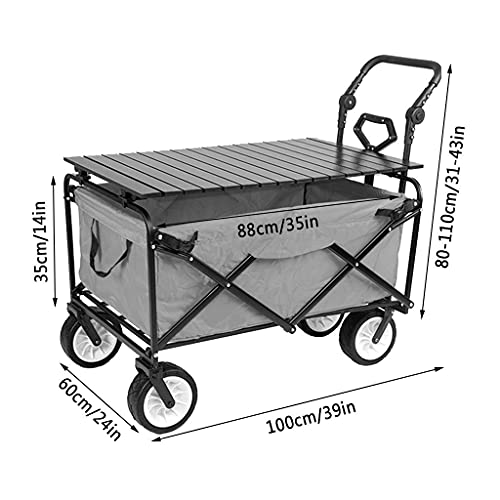 HARIPYER Klappbarer Outdoor-Allzweckwagen, Klappbarer Outdoor-Trolley mit Teleskop-Schiebestange, Gartenwagen mit Tischplatte, Campingwagen auf Rädern, Tragkraft 100 kg