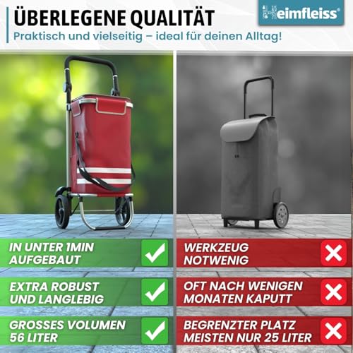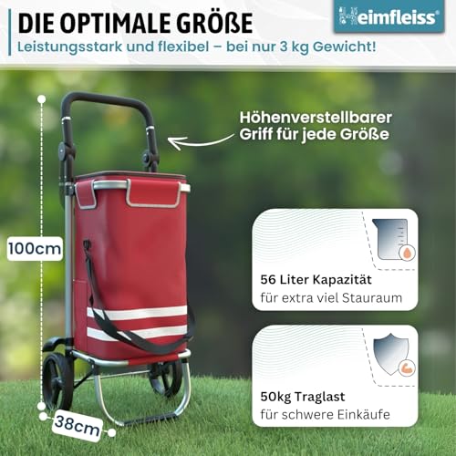 ![Heimfleiss® Einkaufswagen klappbar mit 56L Volumen [+ Ersatzräder] | Einkaufstrolley klappbar mit 50kg Traglast | Leichte Einkaufstasche mit Rollen | Einkaufstrolly Hackenporsche | Shopping Trolley – Bild 3](https://m.media-amazon.com/images/I/515mQf6vB5L.jpg)