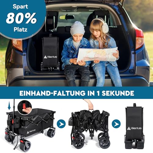 HIKENTURE Bollerwagen Faltbar 135L Faltbarer Bollerwagen – Klappbarer Handwagen für Strand Camping Einkaufen – Faltbollerwagen Handwagen