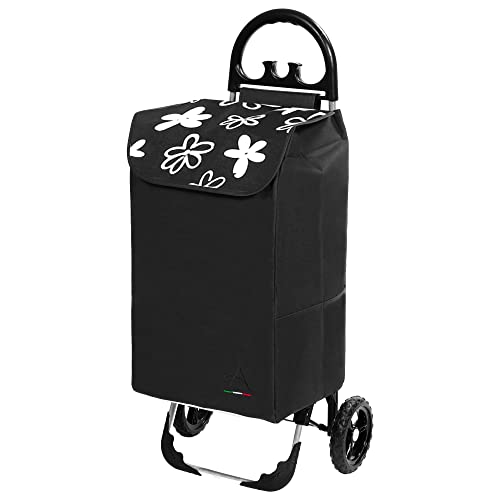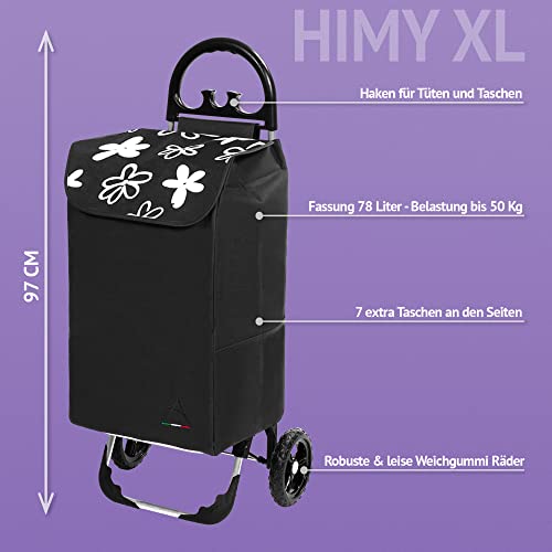 Himy Einkaufstrolley XL schwarz mit Blumenmuster & 78 Liter Volumen – Trolli bis 50kg belastbar mit Reflektoren an den…