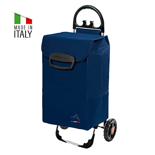 Großer Einkaufsroller Himy mit Gestell aus robustem & leichtem Aluminium – hochwertige Einkaufshilfe hergestellt in italien