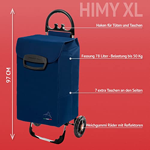 Himy Einkaufstrolli XL in blau mit 78 Liter Volumen – Shoppingwagen Einkaufstrolley klappbar bis 50kg belastbar mit…