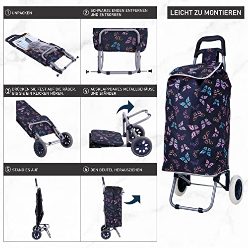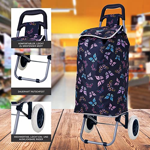 Hoppa 47L Einkaufstrolley Einkaufsroller Einkaufswagen Wagen (Marine Schmetterlinge)