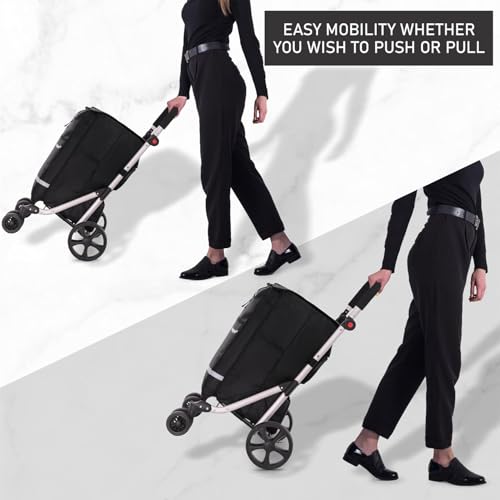 EINFACHE LAGERUNG UND KLICKRÄDER – Klicken Sie einfach die Räder vom Einkaufswagen ab, um die Basis für eine schnelle und einfache Lagerung zusammenzuklappen (bitte beachten Sie, dass die Farbe der Räder verändern kann). Die Tasche kann zum Reinigen auch leicht abgenommen werden.