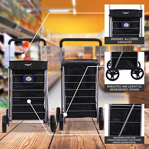 Hoppa Leichtgewichtiger 4-Rädiger Premium 2024 Modell Faltbarer Einkaufswagen Extra Große 64l Kapazität Einkaufswagentasche, 95cm, 4.8kg, Schieb/Zieh Treppensteiger (Schwarz)