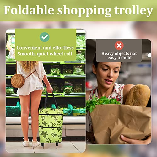 【2 in 1 Design】 Einkaufstrolley klappbar zwischen Umhängetasche und Trolley verbessern. Verbreiterter Handschlaufe für einfachen Halt und Halt. Wenn es vollständig zu einer Trolley-Tasche erweitert ist, kann es aufstehen. Die Räder sind sicher und machen beim Rollen nicht viel Lärm. Die Walze und die Metallhalterung können raffiniert versteckt werden, und die Aufbewahrungstasche kann gefaltet und aufbewahrt werden.