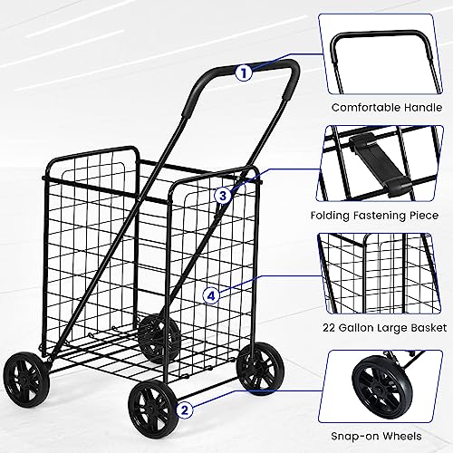 Bequem für den Transport von Lebensmitteln und Wäsche: Verabschieden Sie sich davon, Lebensmittel und Lebensmittel aber und abermal in den Kofferraum zu Befestigen, der Mehrzweckwagen hilft, sie alle für den einfachen Transport nach Hause zu packen. Transportieren Sie Lebensmittel in die Küche, bringen Sie Kleidung in die Wäsche oder bewegen Sie Gegenstände im Büro. Dieser Einkaufswagen ist ein großartiger Helfer, um Komfort in Ihr Leben zu bringen.