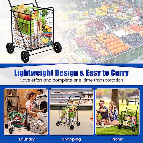 Flexible Räder für einfache Bewegung: Der zusammenklappbare Einkaufswagen mit vier 15,2 cm großen Schaumstoffrädern, die verschleißfest, anpassungsfähig beim Rollen sind und ein Verrutschen auf glattem Boden abwenden, die auf einer Vielfältigkeit von Böden angebracht werden können und langlebiger sind als gewöhnliche Kunststoffräder.