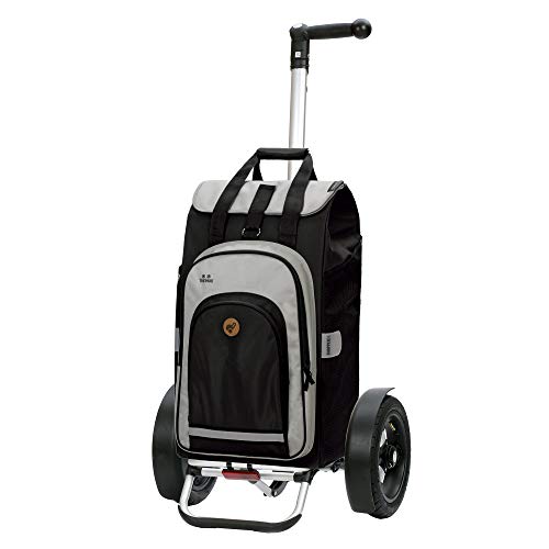 Gestell: Stahlrohr verchromt | bruchsichere Metallgelenke | 2x klappbar | 103cm hoch | dennoch 40cm Spurbreite: schmal und wendig | Bodenfläche mit Bügel erweiterbar | auch ohne Box für Transporte passend | Tragkraft bis 40kg