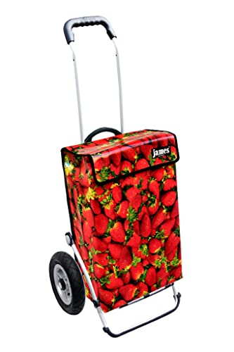 James® Einkaufswagen Design Strawberry, moderner Einkaufstrolley, bunter Lifestyle Trolly, Rollkoffer für Shopping, bis 50kg Tragkraft, Grosse Räder, Made in Österreich!