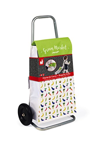 Janod – Green Market Shopping Trolley for Children – Shopping Pretend Play – For children from the Age of 3, J06575…