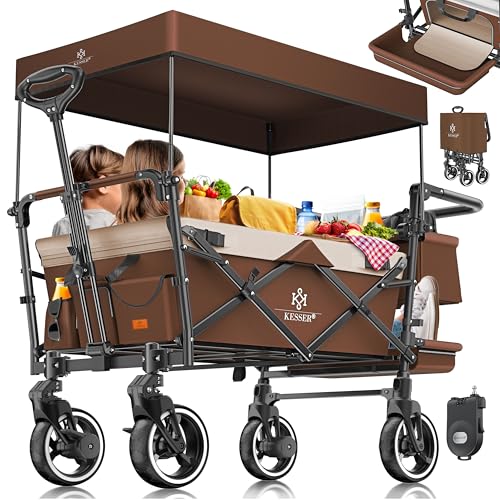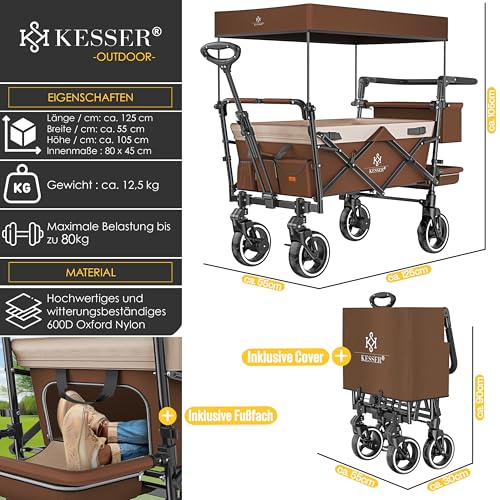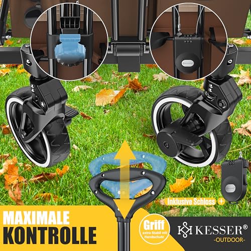 KESSER® Bollerwagen Faltbar GTS-9100 mit Dach Handwagen Transportwagen klappbar inkl. 2X 3-Punkt Gurtsystem 360° Vollgummi-Reifen & Innenraumverlängerung Vorder- & Hinter-Bremse + Cover & Schloss