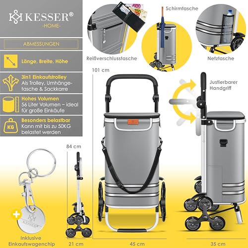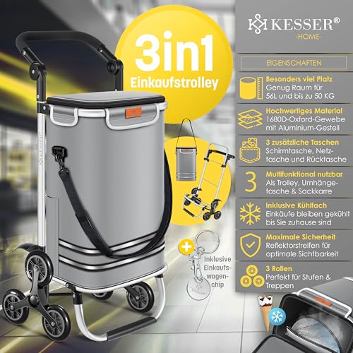 𝐕𝐈𝐄𝐋𝐒𝐄𝐈𝐓𝐈𝐆𝐄 𝐍𝐔𝐓𝐙𝐔𝐍𝐆𝐒𝐌Ö𝐆𝐋𝐈𝐂𝐇𝐊𝐄𝐈𝐓𝐄𝐍 Der KESSER Einkaufstrolley ist ein echtes Multitalent. Ob als geräumiger Trolley, praktische Umhängetasche oder robuste Sackkarre, dieser Begleiter passt sich Ihren Bedürfnissen optimal an. Dieser Trolley ist die perfekte Auftrennung, egal ob Sie schwere Einkäufe transportieren, Ihre Hände freihaben oder einfach stilvoll unterwegs sein möchten.