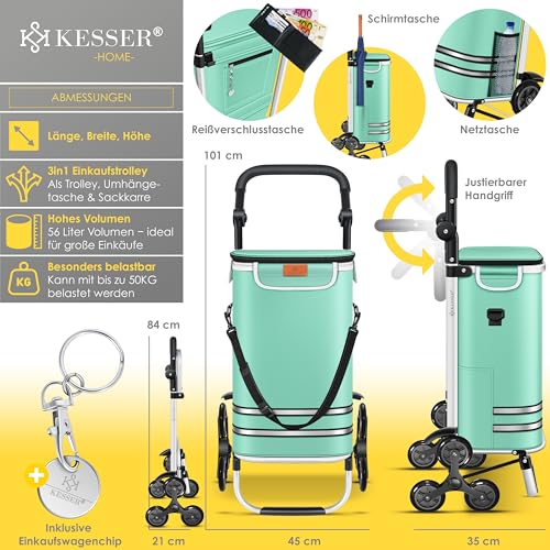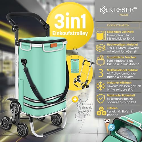 𝐕𝐈𝐄𝐋𝐒𝐄𝐈𝐓𝐈𝐆𝐄 𝐍𝐔𝐓𝐙𝐔𝐍𝐆𝐒𝐌Ö𝐆𝐋𝐈𝐂𝐇𝐊𝐄𝐈𝐓𝐄𝐍 Der KESSER Einkaufstrolley ist ein echtes Multitalent. Ob als geräumiger Trolley, praktische Umhängetasche oder robuste Sackkarre, dieser Begleiter passt sich Ihren Bedürfnissen optimal an. Dieser Trolley ist die perfekte Abtrennung, egal ob Sie schwere Einkäufe transportieren, Ihre Hände freihaben oder einfach stilvoll unterwegs sein möchten.