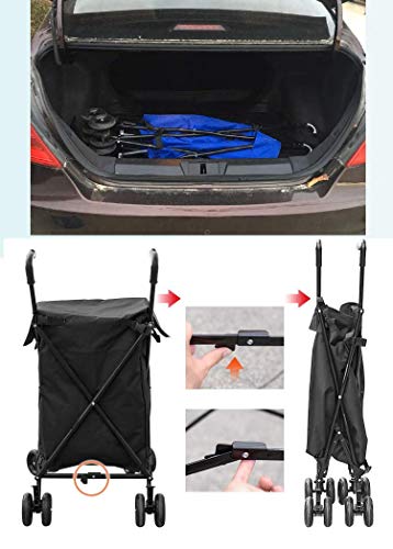 ★[Tragbares und faltbares Design]-Dieser Einkaufswagen ist nicht hingegen leicht und einfach zu transportieren, sondern hat aka einen abstandslos faltbaren Metallrahmen. Sie können die wasserdichte Canvas-Tasche ablösen, dann den Rahmen in eine flache Form falten und dann im Kofferraum, unter dem Bett, Schrank oder der Garage des Autos aufbewahren.