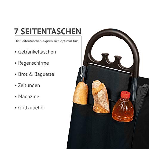 Inklusive einlegbarem Kunststoff Korb – dieser sorgt im Inneren des Einkaufstrolli für noch mehr Stabilität und bietet Schutz für Lebensmittel