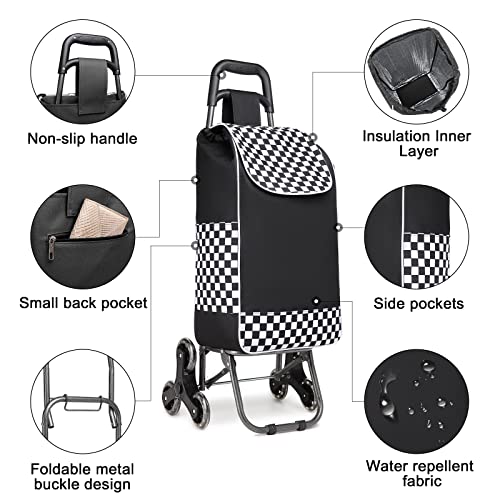 Kono Einkaufstrolley Stabiler 2 in 1 Klappbar Einkaufswagen Multifunktional Treppensteigwagen mit 3 Geräuschlos Räder (Schwarz-Update)