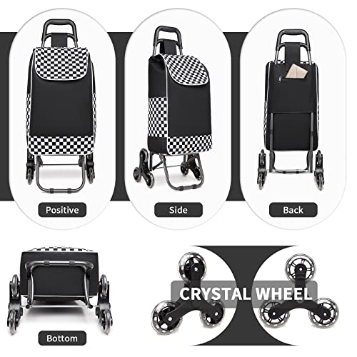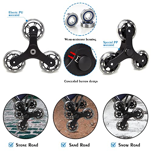 Einfaches Treppensteigen-Design: Drei schwenkbare Räder auf jeder Seite wurden speziell für die Treppensteigfähigkeit des Einkaufswagens entwickelt, wodurch der Treppenwagen leicht auf und ab flutschen kann, was mehr Artikel spart. Die verschleißfesten Räder eignen sich auch gut für alle Arten von Treppen, Schlamm, Gras, Kopfsteinpflaster, Beton und Kies.