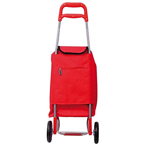 Der Trolley ist langlebig und robust und somit brauchbar für den Einkauf im Supermarkt. Mit klappbaren Kunststoffrollen auf der Unterseite und zwei Griffen oben, ist die Tasche leicht zu ziehen und zu versteifen, auch wenn sie voll ist.