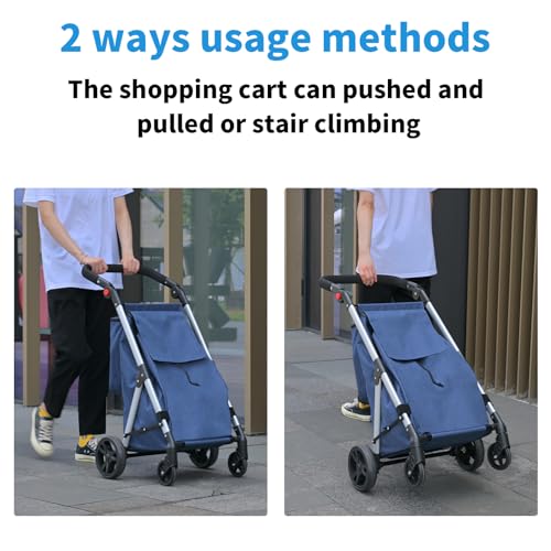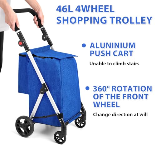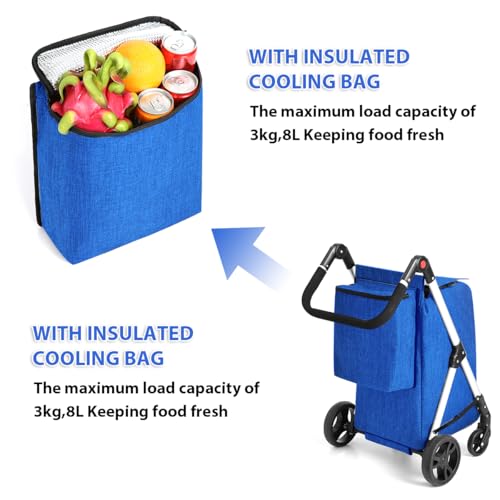LEUYA ABC Einkaufstrolley 4 Rad Einkaufstrolley 46L Aluminium Einkaufswagen mit Isolierter Kühltasche Verstellbarer Griff Faltbarer Einkaufstrolley (Königsblau)