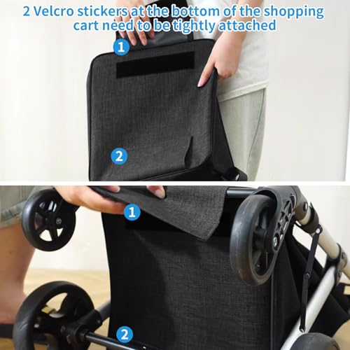 【Umweltschutz】: Einkaufswagen mit einer wasserdichten Tasche von 46 l und einer maximalen Belastbarkeit von 8 Litern beträgt ca. 3 kg Gefrierbeutel. Das Innere der Einkaufstasche hat eine wasserdichte Beschichtung, obwohl Oxford-Tuch feucht sein kann, werden die Gegenstände im Inneren nicht feucht. Die Einkaufstasche ist vulgo abnehmbar für den persönlichen Gebrauch, was sie umweltfreundlicher macht.