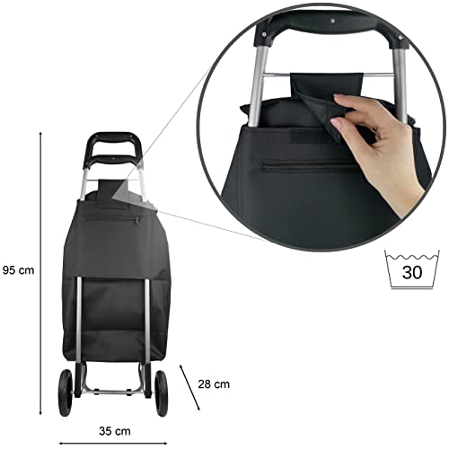 LEVIATAN – Einkaufstrolley | Abnehmbare Polyester Tasche | mit den Laufruhigen Rollen | Perfekt zum Einkaufen | Schwarz…