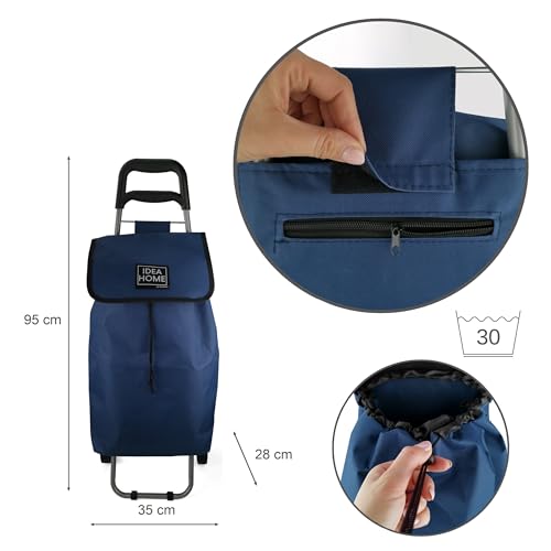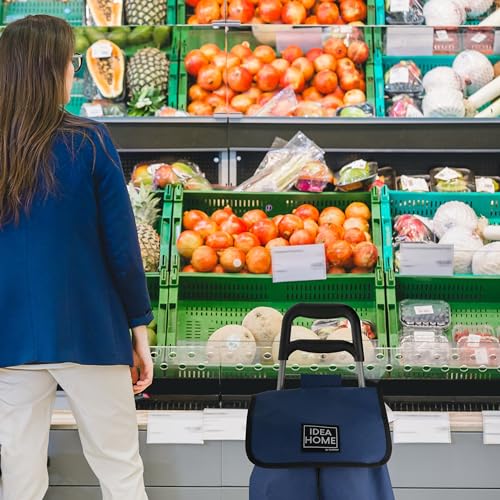 Leviatan IDEA HOME Einkaufskorb, Tragekorb, Einkaufskorb mit viel Stauraum, Einkaufstrolley, Einkaufswagen, wasserdicht, Aluminium Einkaufstrolley, Dunkelblau