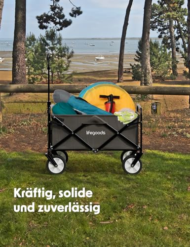 Der LifeGoods klappbollerwagen ist einfach zu verwenden und bietet vielseitige Einsatzmöglichkeiten. Perfekt für den Garten, beim Camping oder für den täglichen Einkauf.