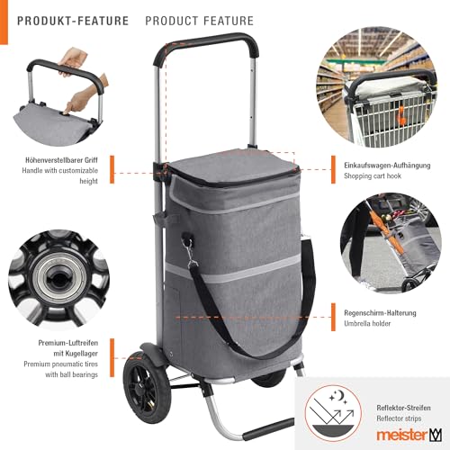 HOCHWERTIGE EINKAUFSTASCHE: Großes Fassungsvermögen von 45 Litern bietet im Überfluss Platz für Ihre Einkäufe | Abnehmbarer & regenfester Bezug ist einfach zu reinigen | Mit Reflektoren für gute Sichtbarkeit im Dunkeln | Praktische Regenschirmtasche an der Seite