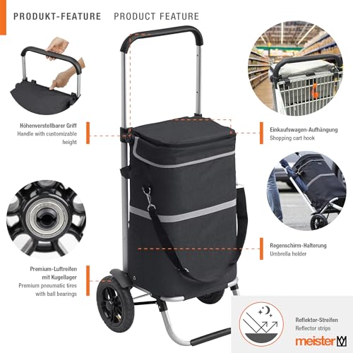 HOCHWERTIGE EINKAUFSTASCHE: Großes Fassungsvermögen von 45 Litern bietet massenweise Platz für Ihre Einkäufe | Abnehmbarer & regenfester Bezug ist einfach zu reinigen | Mit Reflektoren für gute Sichtbarkeit im Dunkeln | Praktische Regenschirmtasche an der Seite