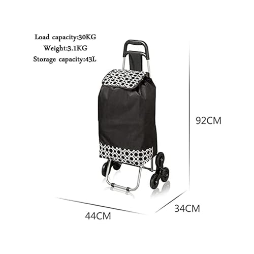 MHYSADGA Einkaufstrolley, zusammenklappbar, tragbar, mit 3 Rädern, Fassungsvermögen 43 l, Rahmen aus Karbonstahl und Oxford-Gewebe