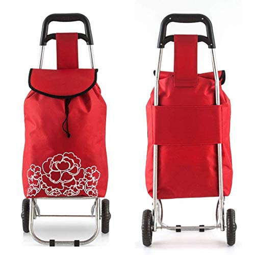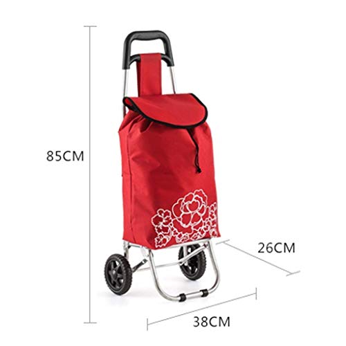 MTYLX Multifunktionale Tragbare Wagen Mit Rädern, Einkaufswagenwagen, Wasserdichter, Tragbarer Einkaufswagen (Farbe: Rot, Größe: 38 cm * 26 cm * 85 Cm)