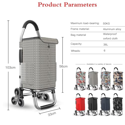 Einkaufstrolley auf Rädern: Mit leisen gummierten 2 robusten Rädern für mühelose Mobilität in Stadt und Städten. Praktisches Design für Langlebigkeit auf verschiedenen Oberflächen. Ideal für Einkaufsreisen, Besorgungen und den täglichen Gebrauch. Maße (L x B x H): 56 x 33 x 103 cm. Perfekt für den Transport von Lebensmitteln, Wäsche und mehr